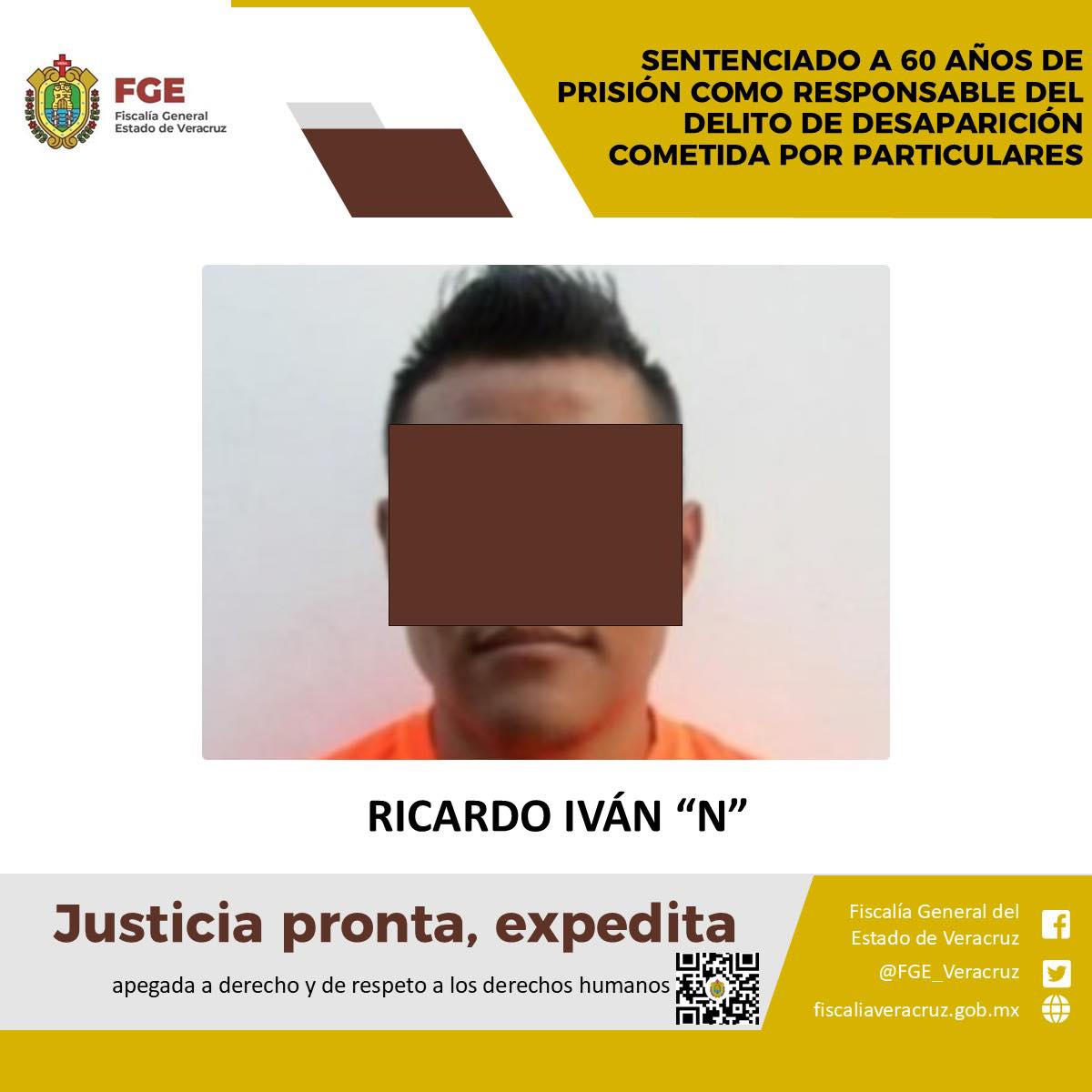 La Fiscalía General del Estado, a través de la Fiscalía Regional en Tantoyuca, ha logrado una contundente sentencia condenatoria de 60 años de prisión contra Ricardo Iván “N”, se le encontró culpable del delito de desaparición cometida por particulares, en perjuicio de la víctima con iniciales C.O.M.