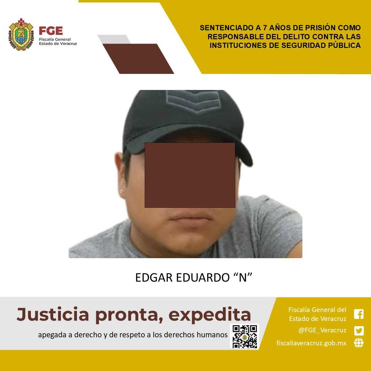 Tihuatlán, Veracruz | El día de ayer la Fiscalía General del Estado dió a conocer que la Fiscalía Regional de Tuxpan logró la sentencia condenatoria en contra de Edgar Eduardo “N”, quien fue encontrado responsable del delito contra las instituciones de seguridad pública.