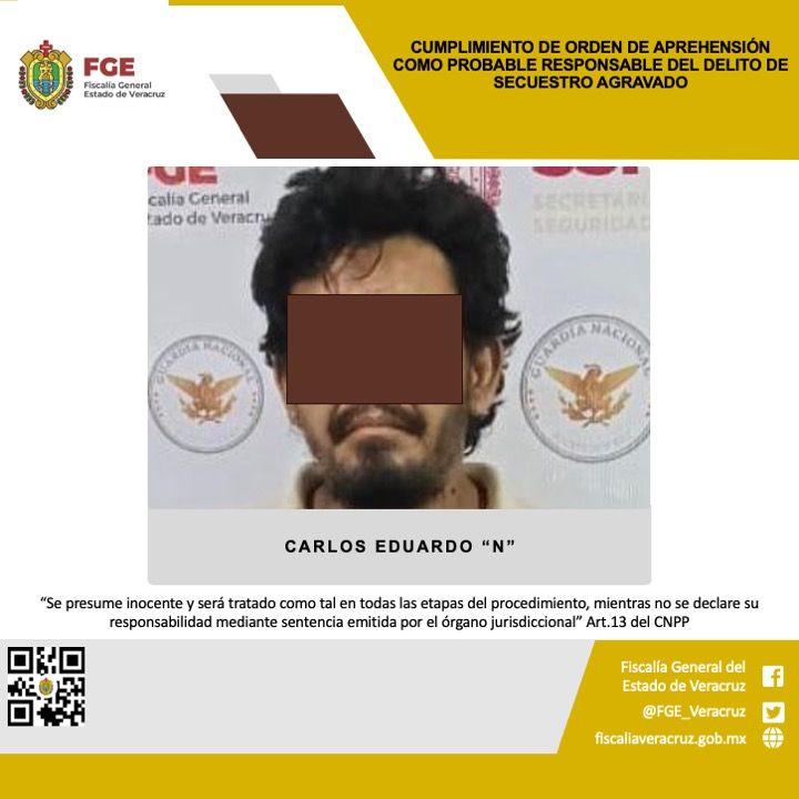 Tecolutla, Veracruz | El día de ayer, elementos de la Unidad Especializada en Combate al Secuestro cumplimentaron la orden de aprehensión en contra de Carlos Eduardo “N”, quien es señalado como probable responsable del delito de secuestro agravado, en agravio de la víctima identificada con las iniciales E.A.P.