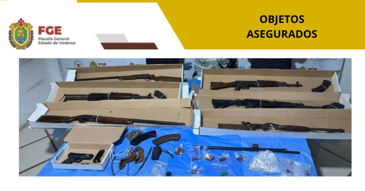 Durante el operativo, se localizaron diversos indicios que serán integrados a la carpeta de investigación, entre ellos: casquillos, cargadores y cartuchos balísticos, armas largas, un arma corta, un cañón de arma larga, un radio de baja frecuencia y un equipo de limpieza para armas.