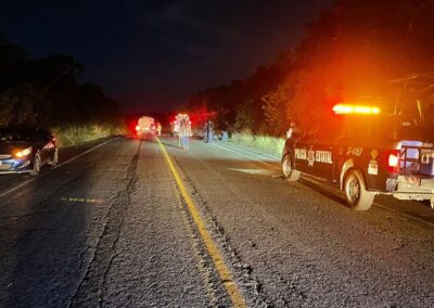 Al sitio arribó una intensa movilización de cuerpos de emergencia, incluyendo a Bomberos, Protección Civil, Cruz Roja, Escuadrón Nacional de Rescate y personal voluntario, quienes trabajaron de manera coordinada para sofocar las llamas, las cuales alcanzaron el pastizal y la parte trasera del autobús. Asimismo, elementos de la Policía Estatal, Guardia Nacional y personal de la SEDENA resguardaron el perímetro y acordonaron la zona para facilitar las labores de rescate. La circulación vehicular se vio severamente afectada durante varias horas, generando largas filas de vehículos mientras se realizaban las maniobras correspondientes.