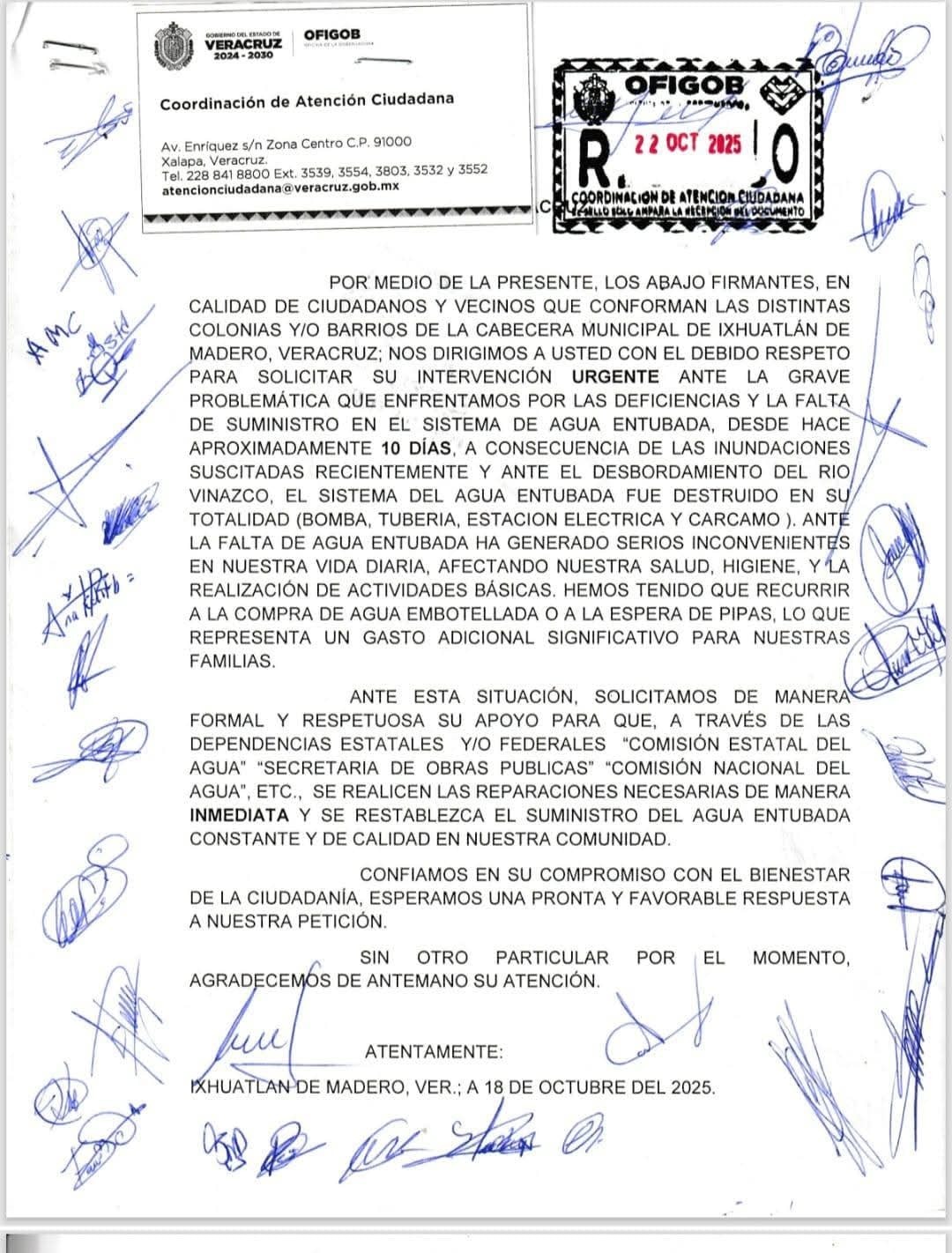 Ixhuatlán de Madero, Veracruz |  La cabecera municipal de Ixhuatlán de Madero atraviesa una crisis de desabasto de agua potable que se ha extendido por más de diez días, llevando a las familias a solicitar la intervención directa de la gobernadora Rocío Nahle García.