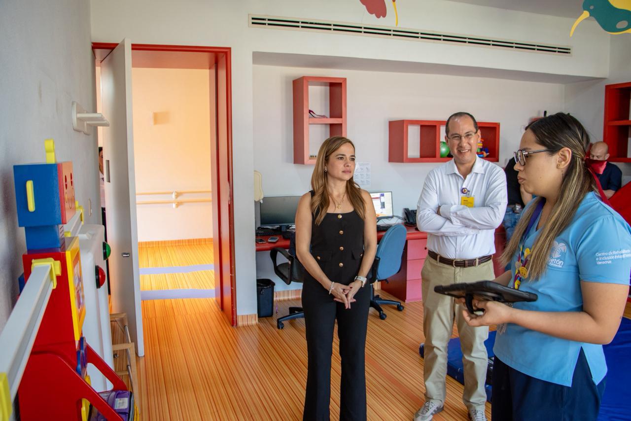 La presidenta del Sistema Municipal para el Desarrollo Integral de la Familia (DIF) Tuxpan, Marisol Martínez Barrios, realizó una visita al Centro de Rehabilitación Integral Teletón Veracruz, en la ciudad de Poza Rica, donde recorrió sus instalaciones y conoció de primera mano las terapias y atenciones integrales de calidad que este centro brinda a niñas, niños y adolescentes.