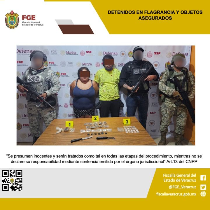 Respetando los derechos humanos de los detenidos, así como al debido proceso, ambos fueron presentados ante el fiscal correspondiente de la Fiscalía Regional Xalapa para que defina su situación jurídica, mientras que los artículos incautados fueron asegurados.