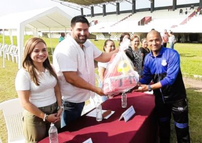 Como incentivo para el desempeño de los equipos, las autoridades presentes entregaron paquetes de material deportivo tanto a entrenadores como a jugadores, en reconocimiento a su esfuerzo y dedicación.