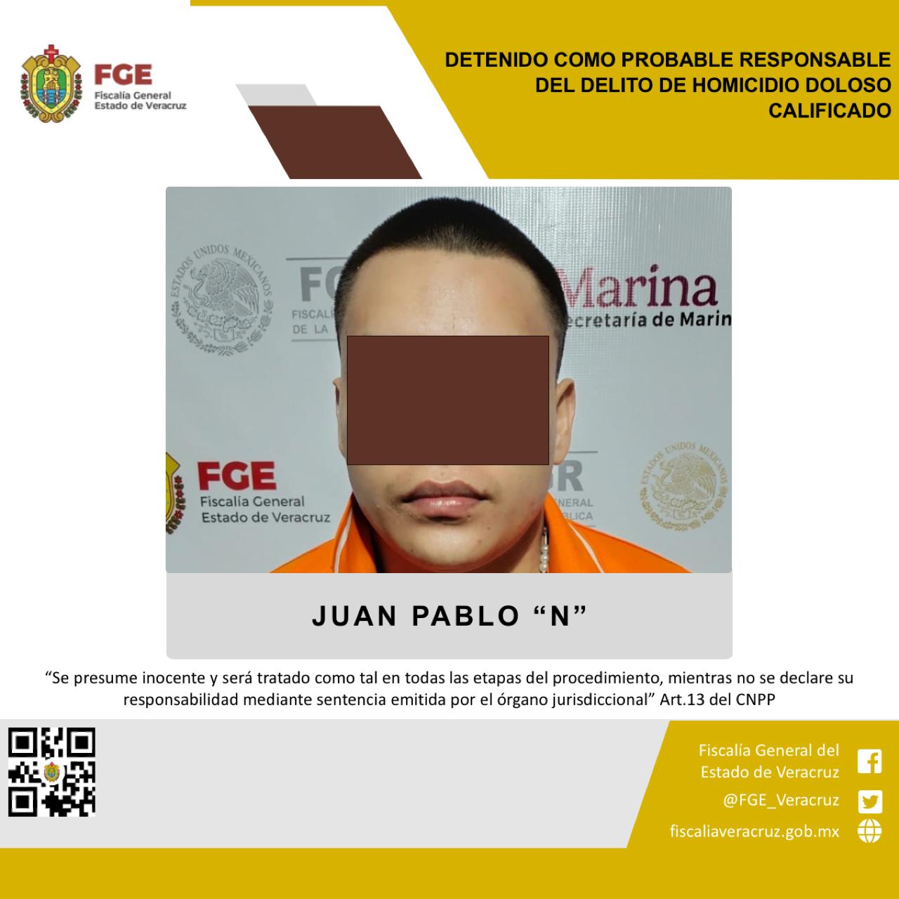 Poza Rica, Veracruz | El día de ayer la Fiscalía General del Estado dió a conocer el cumplimiento de la orden de aprehensión en contra de Juan Pablo “N”, quien es señalado como presunto responsable del delito de homicidio doloso calificado en agravio de la víctima identificada con las iniciales A.A.S