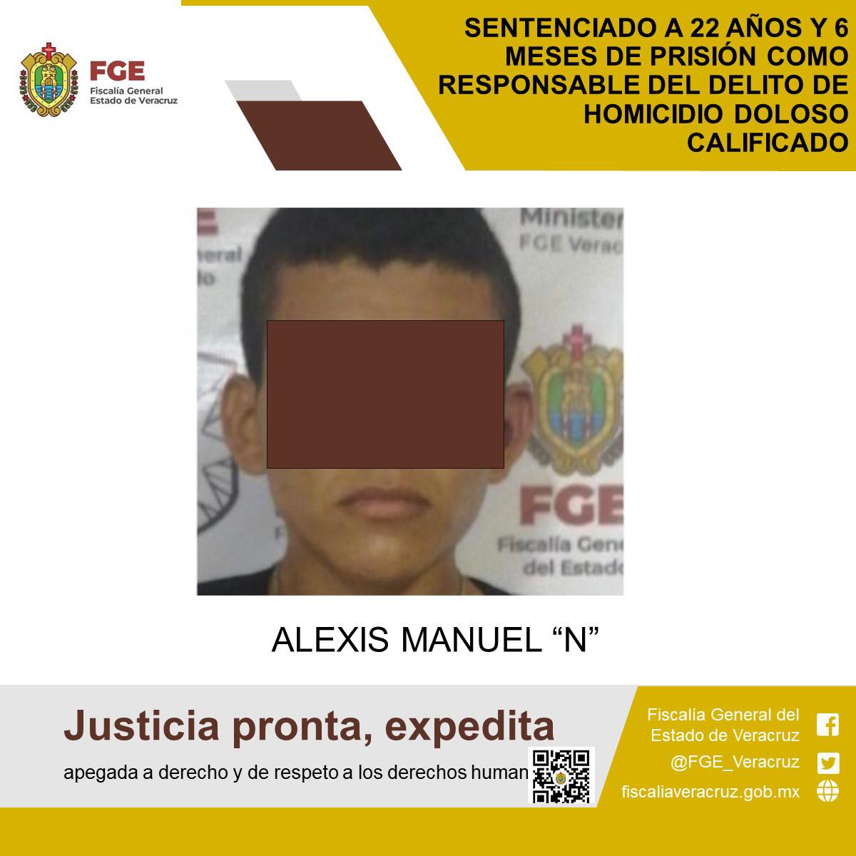 Pánuco, Veracruz | La mañana del pasado sábado 12 de abril, la Fiscalía General del Estado, informó que a través de la Fiscalía Regional Tantoyuca, fue obtenida la sentencia condenatoria en contra de Alexis Manuel “N”, quien fue encontrado responsable de haber cometido el delito de homicidio doloso calificado cometido en agravio de la víctima identificada con las iniciales L.C.H.