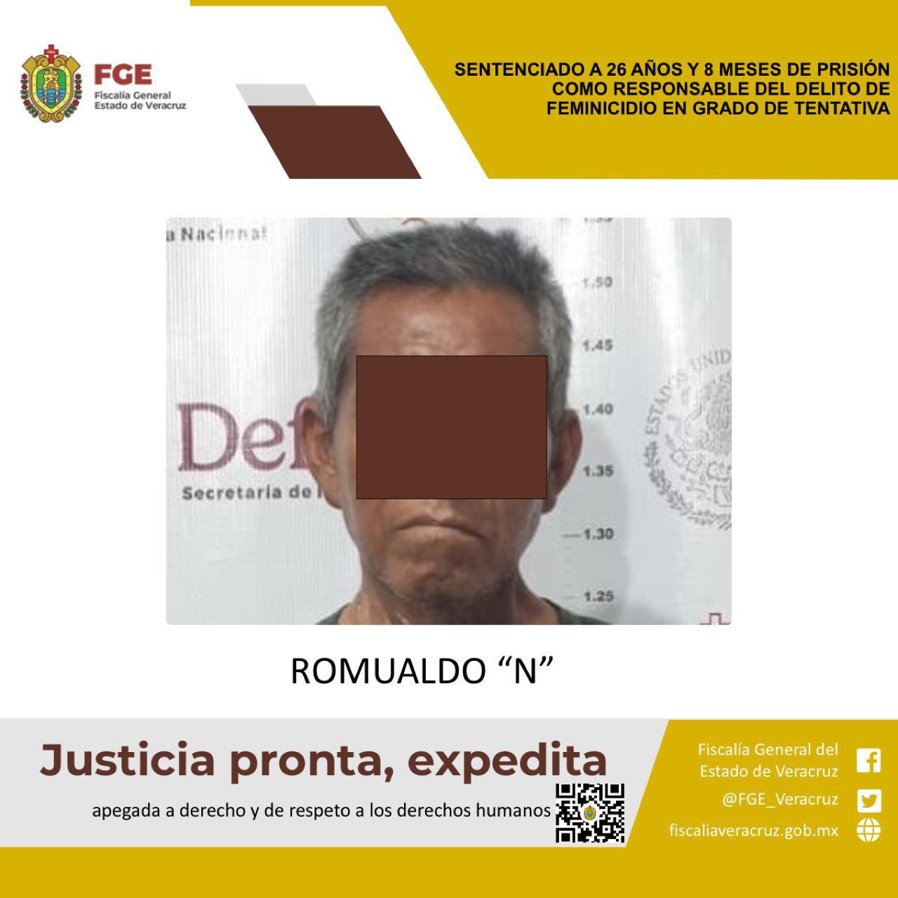 Tantoyuca, Veracruz | Romualdo “N” ha sido sentenciado a 26 años y 8 meses de prisión por el delito de feminicidio en grado de tentativa. Este veredicto llega 09 años después de los hechos.