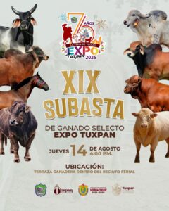 - 16:00 h. XIX Subasta de Ganado Selecto Expo Tuxpan 2025