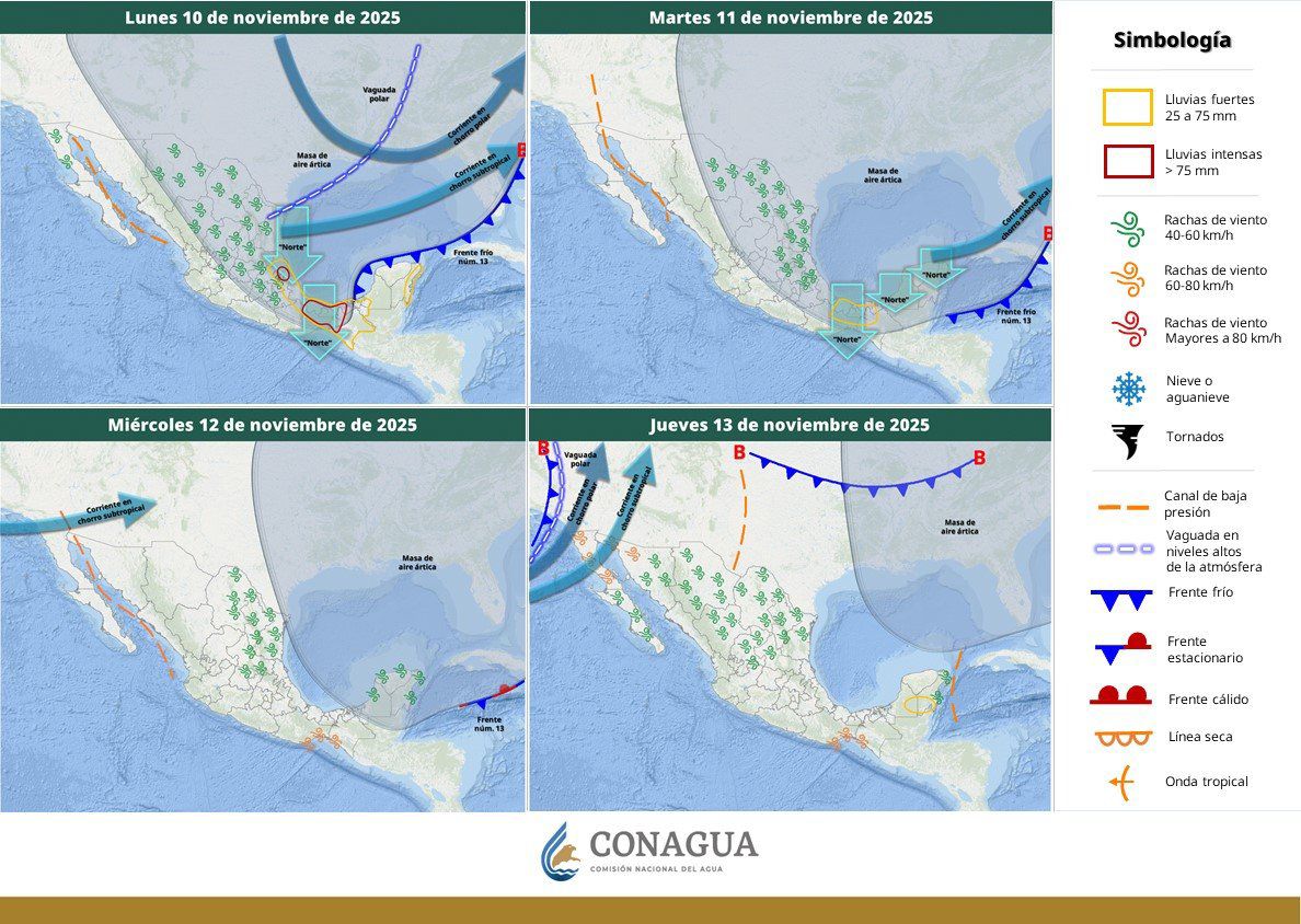Tome precauciones por lluvia, “Norte” y frío, asociados al Frente Frío 13