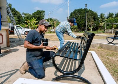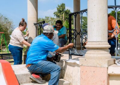 Durante la intervención se llevó a cabo limpieza general, chapeo, arreglo de jardines, aplicación de pintura en bancas, kiosco y juegos infantiles, así como mantenimiento a las luminarias, con el objetivo de devolverle a este espacio su funcionalidad y buena imagen para el disfrute de las familias.