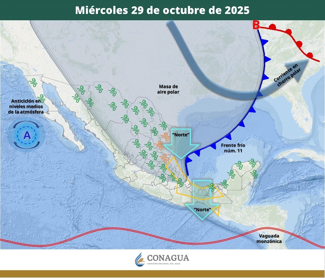 El Servicio Meteorológico Nacional ha informado que se prevé un “Norte” de 65 a 75 km/h, rachas de 85 a 100 km/h y oleaje de 3.0 a 4.0 metros de altura, en las costas de Tamaulipas y Veracruz.