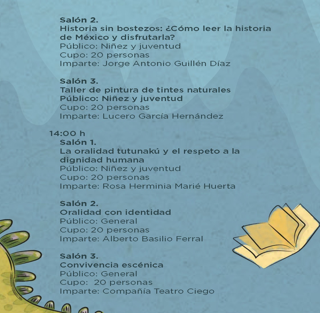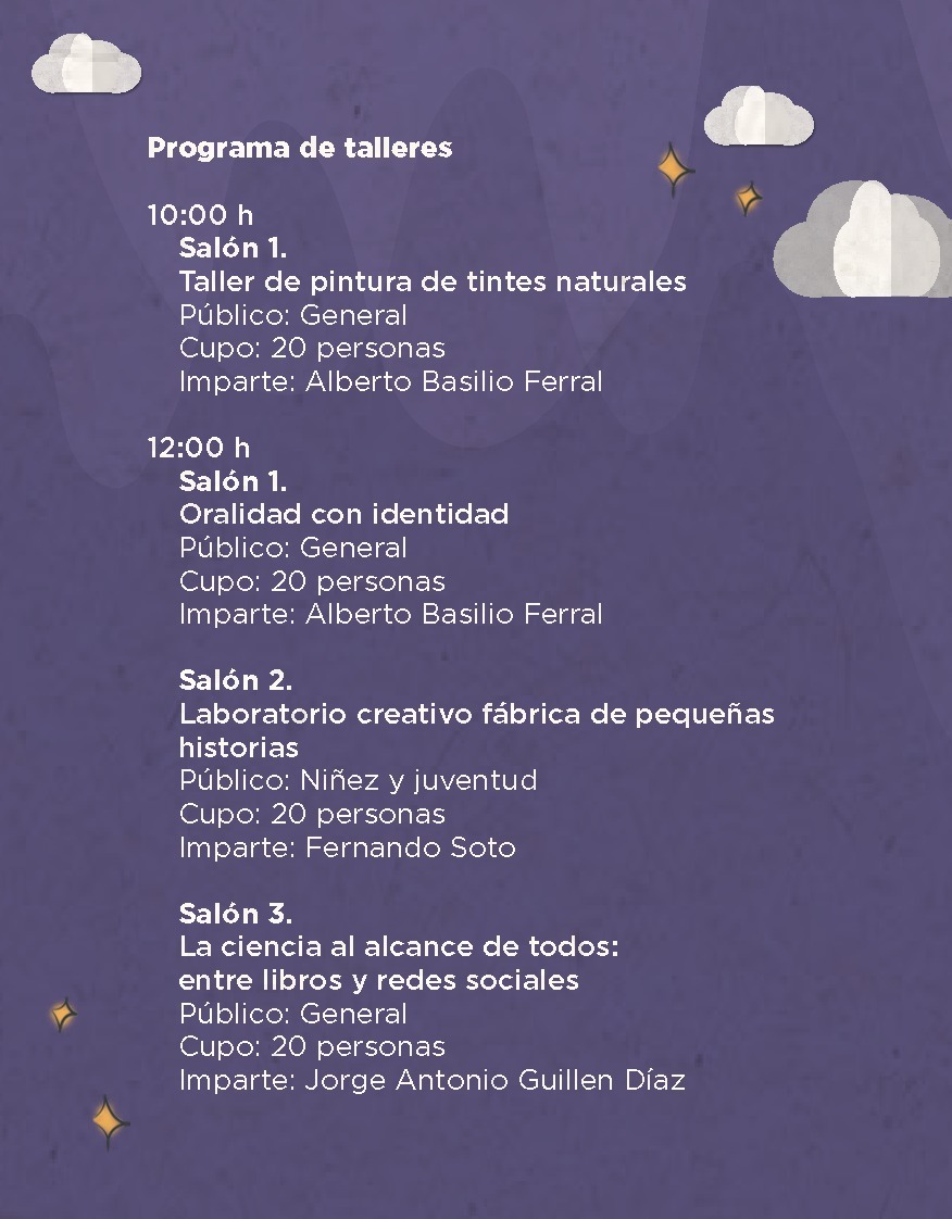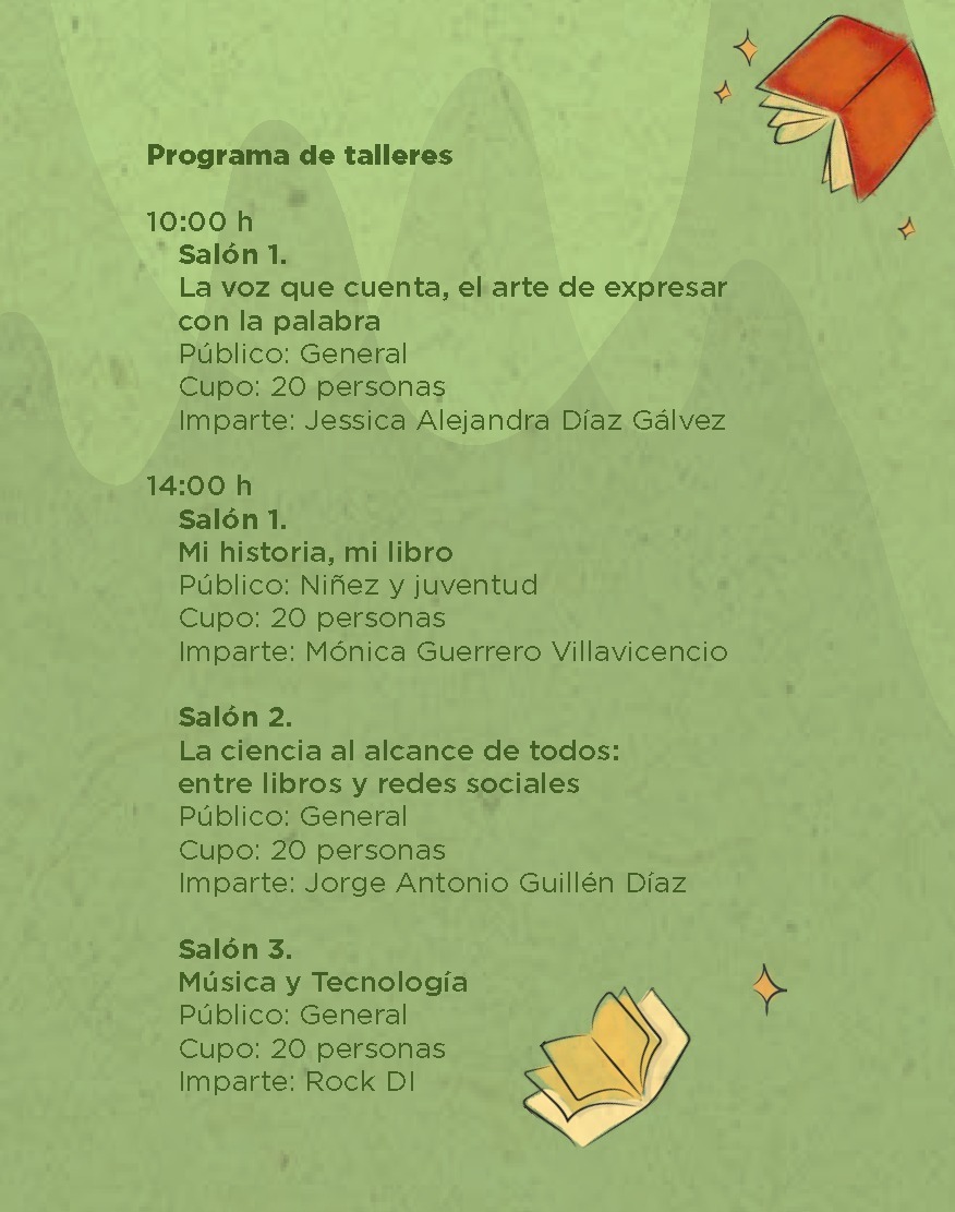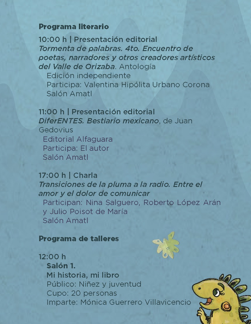 Además, dentro del programa literario, el sábado 11 se contará con la participación del cronista de la ciudad, Salvador Hernández García, con una charla acerca de la monografía de Tuxpan: “Tuxpan, un día como hoy en el Tuxpan del Ayer”.