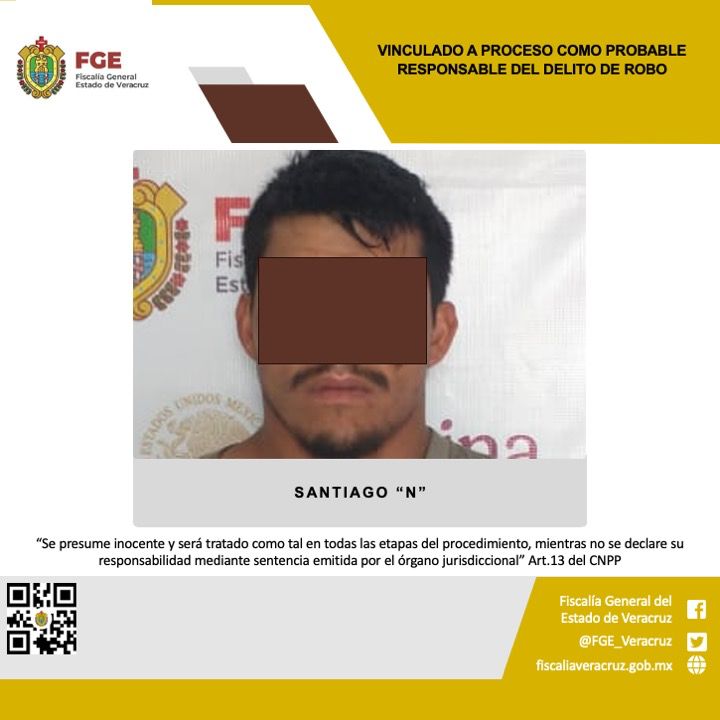 Huayacocotla, Veracruz | El día de ayer un juez de control de este distrito judicial emitió la vinculación a proceso en contra de Santiago “N”, quien es señalado como probable responsable del delito de robo, cometido en agravio de la víctima identificada con las iniciales G.C.G.