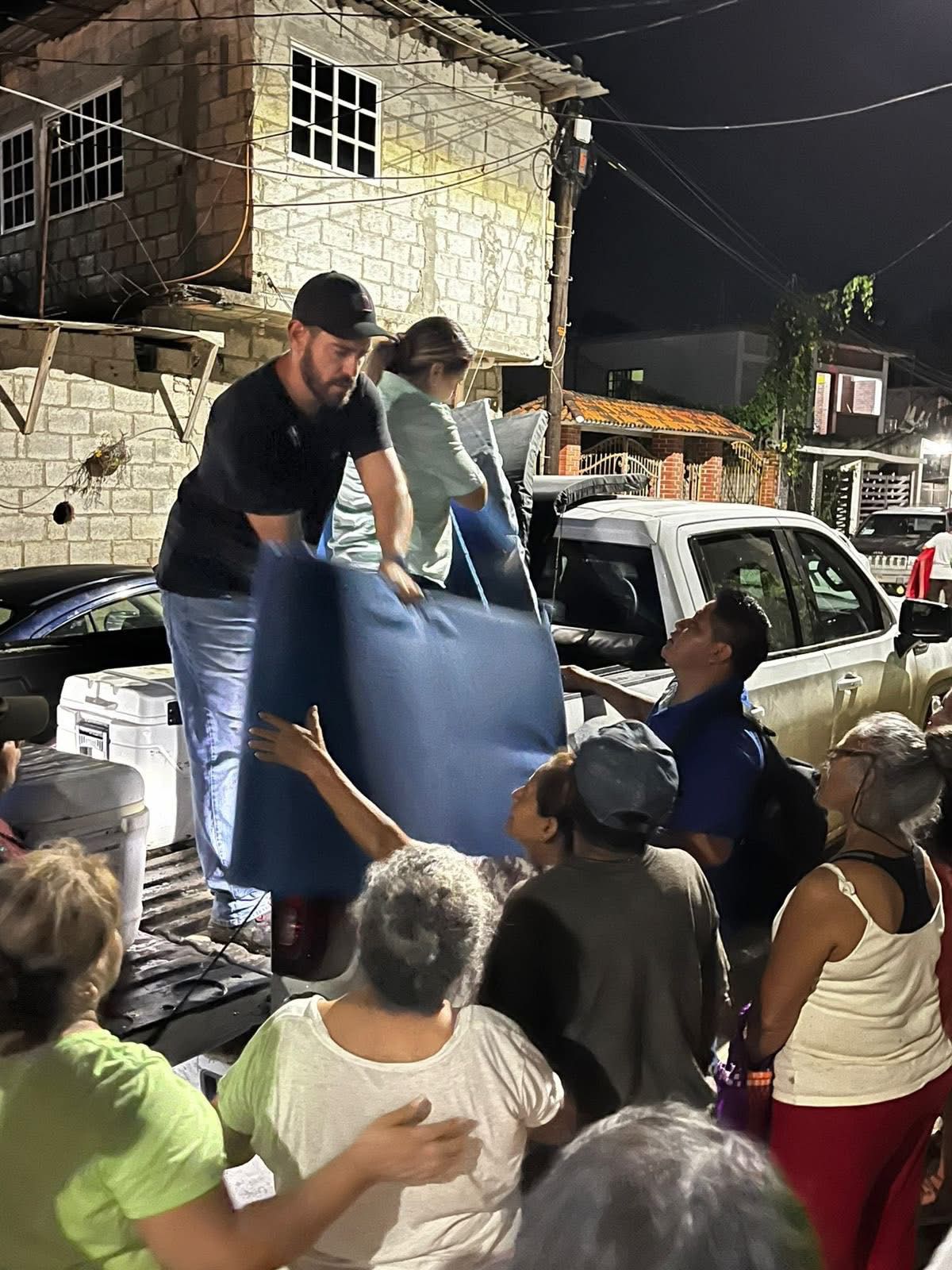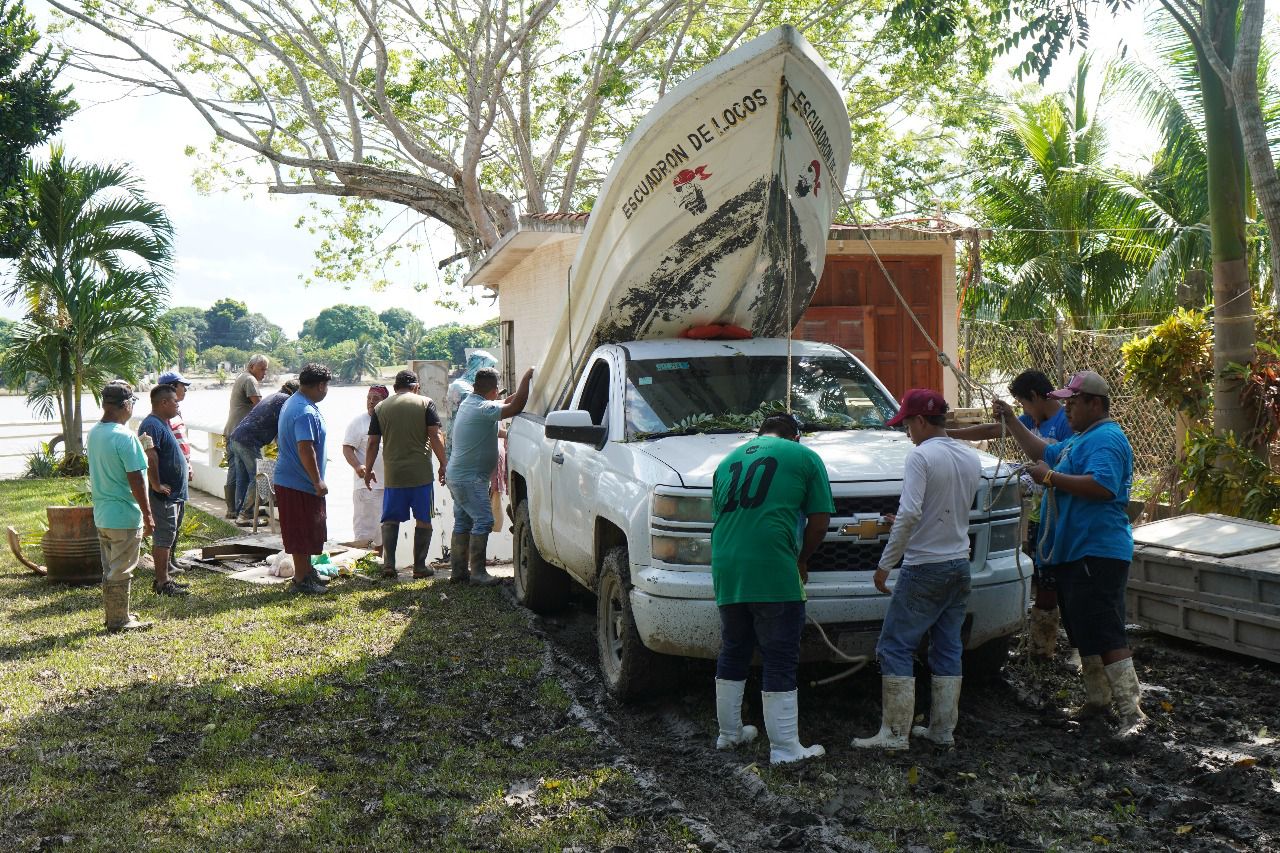 El alcalde electo agradeció a su amiga, la síndica electa Martha Zárate, por gestionar la retroexcavadora y una lancha que permitieron a la Comisión Federal de Electricidad (CFE) restablecer el servicio de energía en Juana Moza, así como al sector empresarial por su valioso respaldo con maquinaria y recursos.