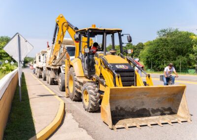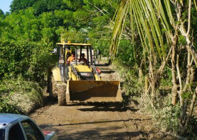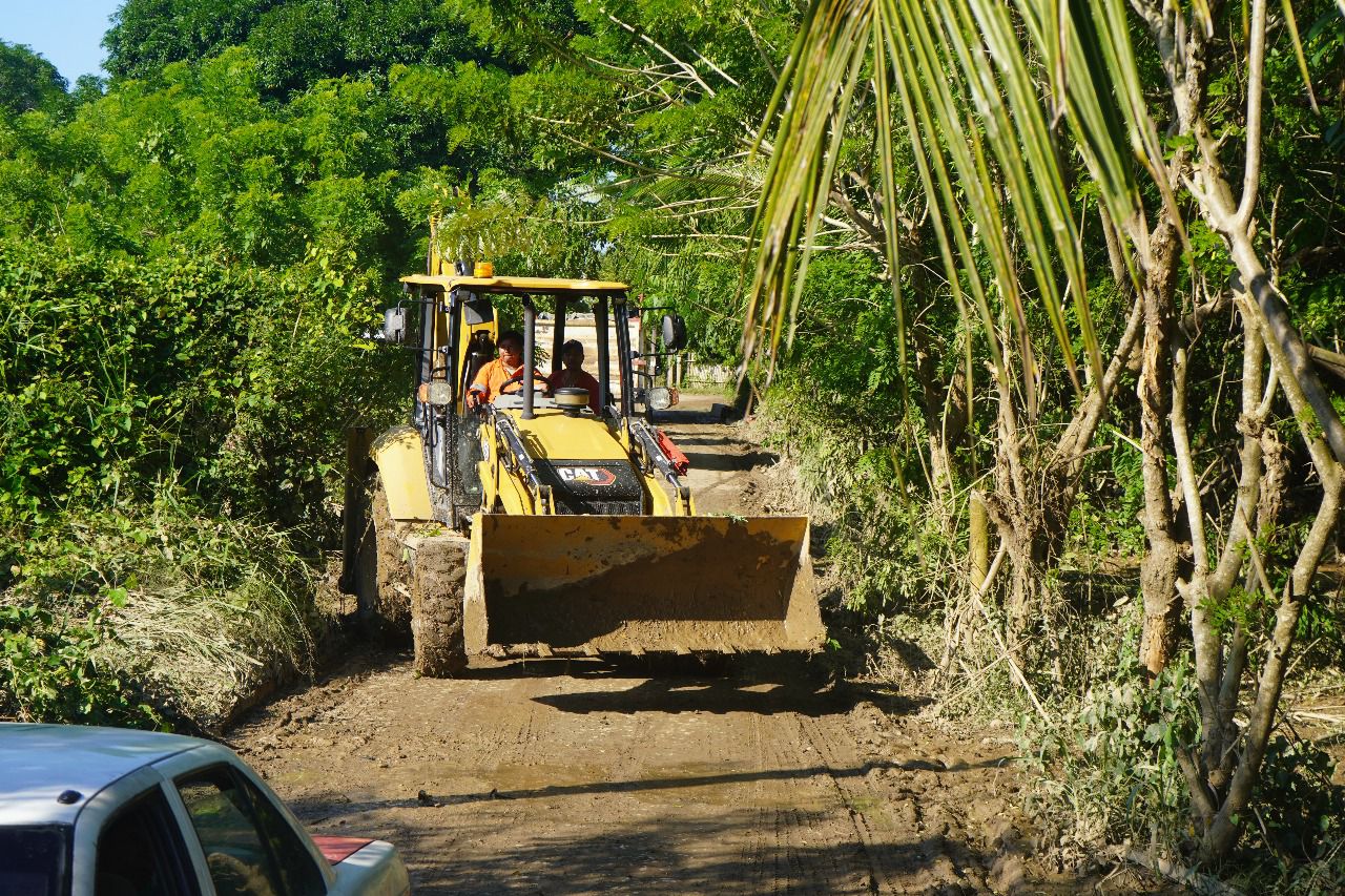 Asimismo, se envió maquinaria a Juana Moza e Higueral para continuar con las labores de limpieza y rehabilitación: retroexcavadoras para abrir circuitos y desazolvar, un camión recolector de desechos y una pipa para abastecer de agua a los albergues y familias.