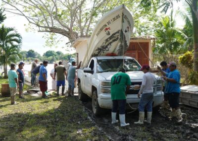 Durante el día, Daniel Cortina también se reunió con pescadores, voluntarios y empresarios para organizar cuadrillas de apoyo dedicadas a la limpieza de casas afectadas, fortaleciendo así la coordinación y el trabajo en equipo para avanzar con mayor rapidez en la recuperación de las zonas dañadas.