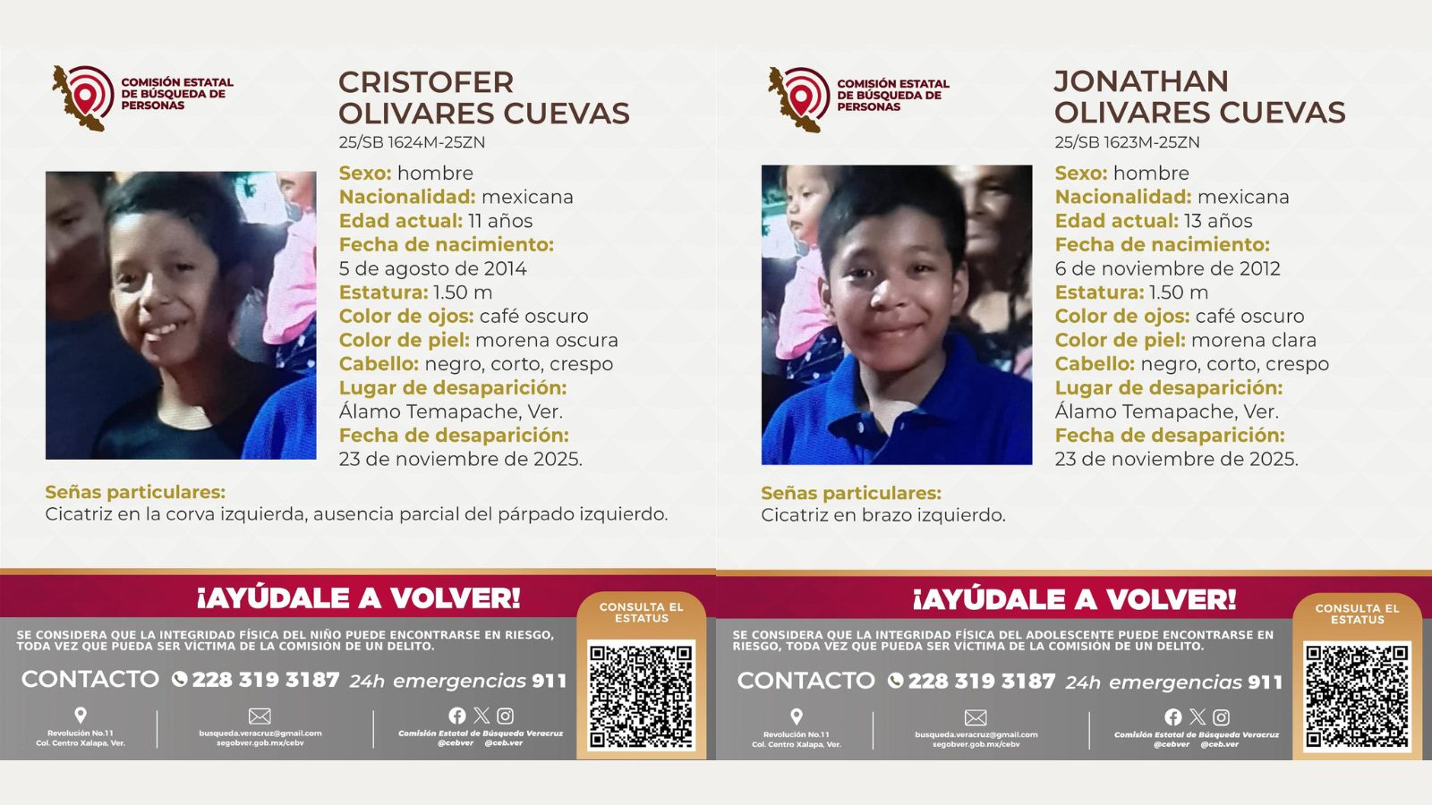 Familiares y la CEB solicitan el apoyo de la ciudadanía para aportar cualquier dato que ayude a ubicarlos. Cualquier información puede reportarse al teléfono de la Comisión Estatal de Búsqueda: 228 319 3187 (disponible las 24 horas), o al número de emergencias 911.