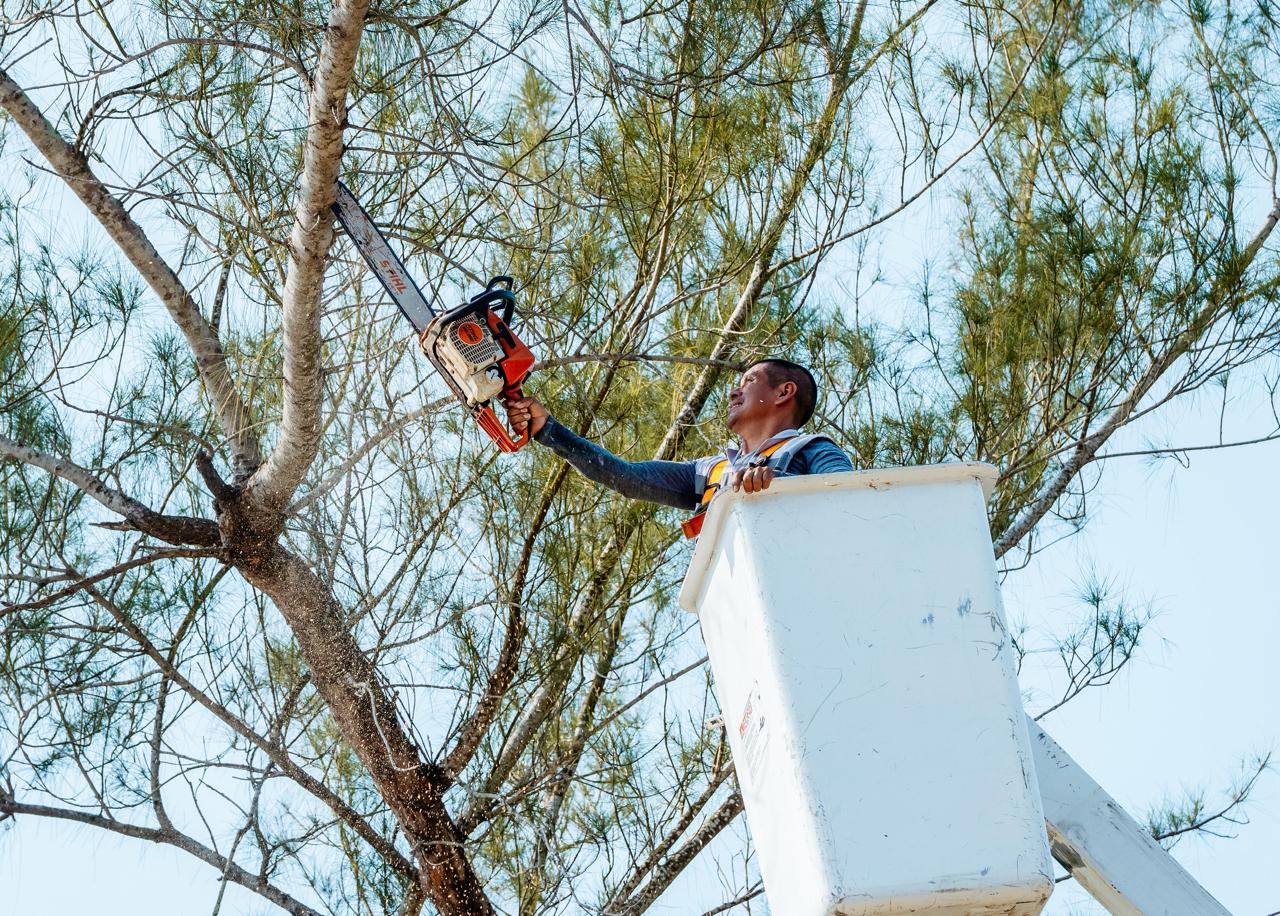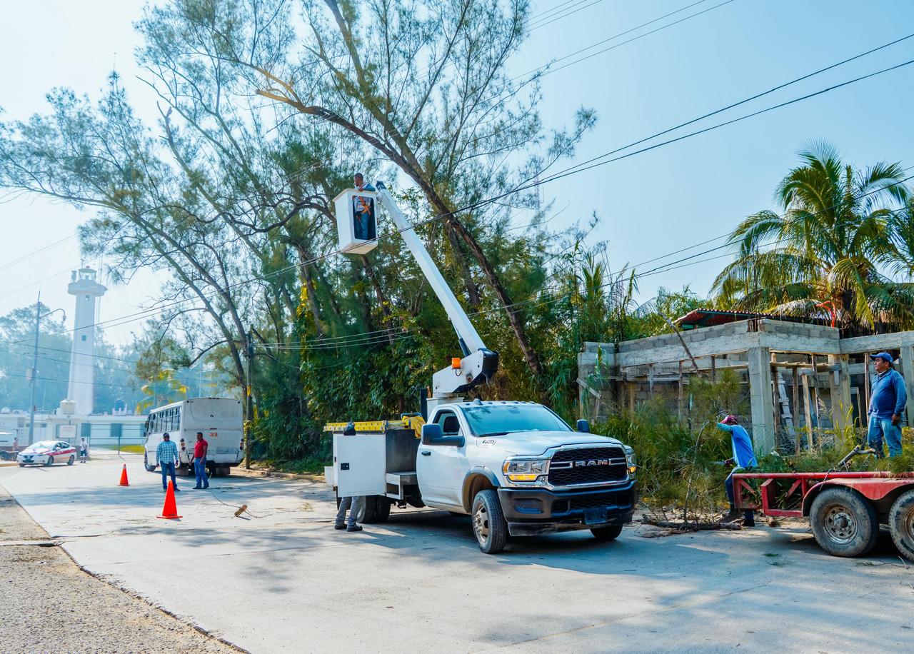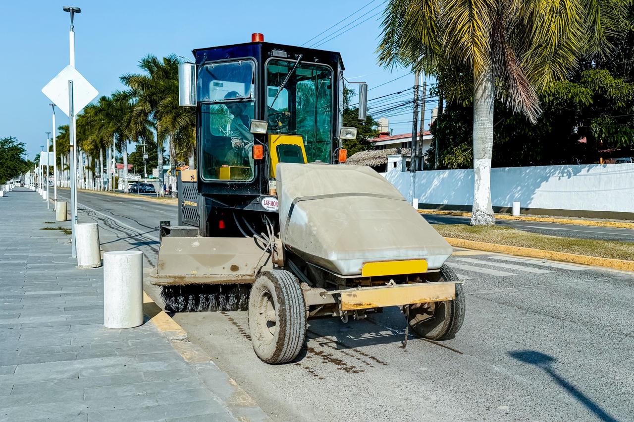 La barredora está realizando limpieza de nuevas zonas del bulevar, además se está desarrollando una intensiva recolección de basura en diversos puntos de la playa, continuando también, con el mantenimiento de áreas verdes y el retiro de ramas del cableado en postes de luz, esto último, como medida preventiva para evitar afectaciones al servicio eléctrico y situaciones de riesgo a la ciudadanía durante fenómenos meteorológicos.