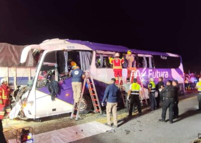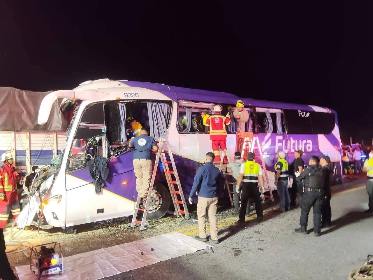 Ciudad Victoria, Tamaulipas | Un fatídico accidente tuvo lugar la mañana de este sábado 27 de diciembre en el kilómetro 90 de la carretera que conecta Ciudad Victoria con Monterrey, esto después de que un autobús de la línea Futura, marcado con el número económico 9306, se impactara contra la caja de un trailer estacionado, esto mientras cubría la ruta Nuevo Laredo – Poza Rica, Veracruz.