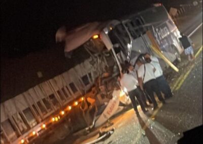 Hasta el momento, las autoridades en el sitio reportan de manera preliminar el fallecimiento de una persona y al menos 20 pasajeros lesionados. Debido a la magnitud del impacto, diversos equipos de emergencia, incluyendo bomberos y especialistas en rescate hidráulico, trabajan en las labores de liberación de personas que quedaron atrapadas entre los fierros de la unidad.