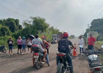 Álamo, Veracruz | Esta mañana, vecinos de la comunidad de Puerta Siete realizaron un bloqueo vehicular en el tramo carretero federal que conecta Chapopote con Puerta Siete, exigiendo justicia y apoyo para una residente de la localidad que sufrió un grave accidente la noche del martes mientras viajaba en motocicleta.