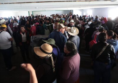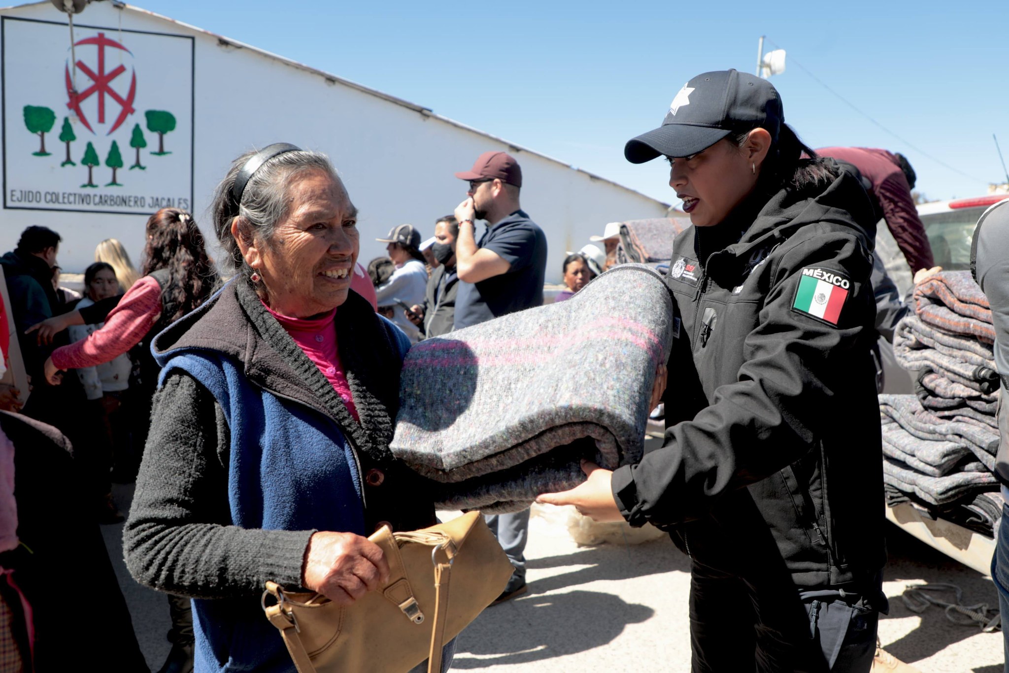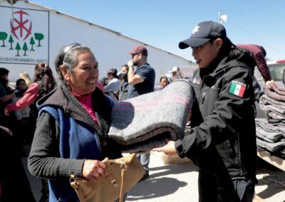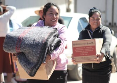De manera simultánea, otro equipo atendió Lomas de las Coronas, Lomas de los Conejos, Paredón, Potrerillo de los Quiotes y Peña Agujerada, con punto de entrega en Agua Bendita, beneficiando a las familias con 174 despensas y 400 cobijas.