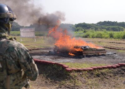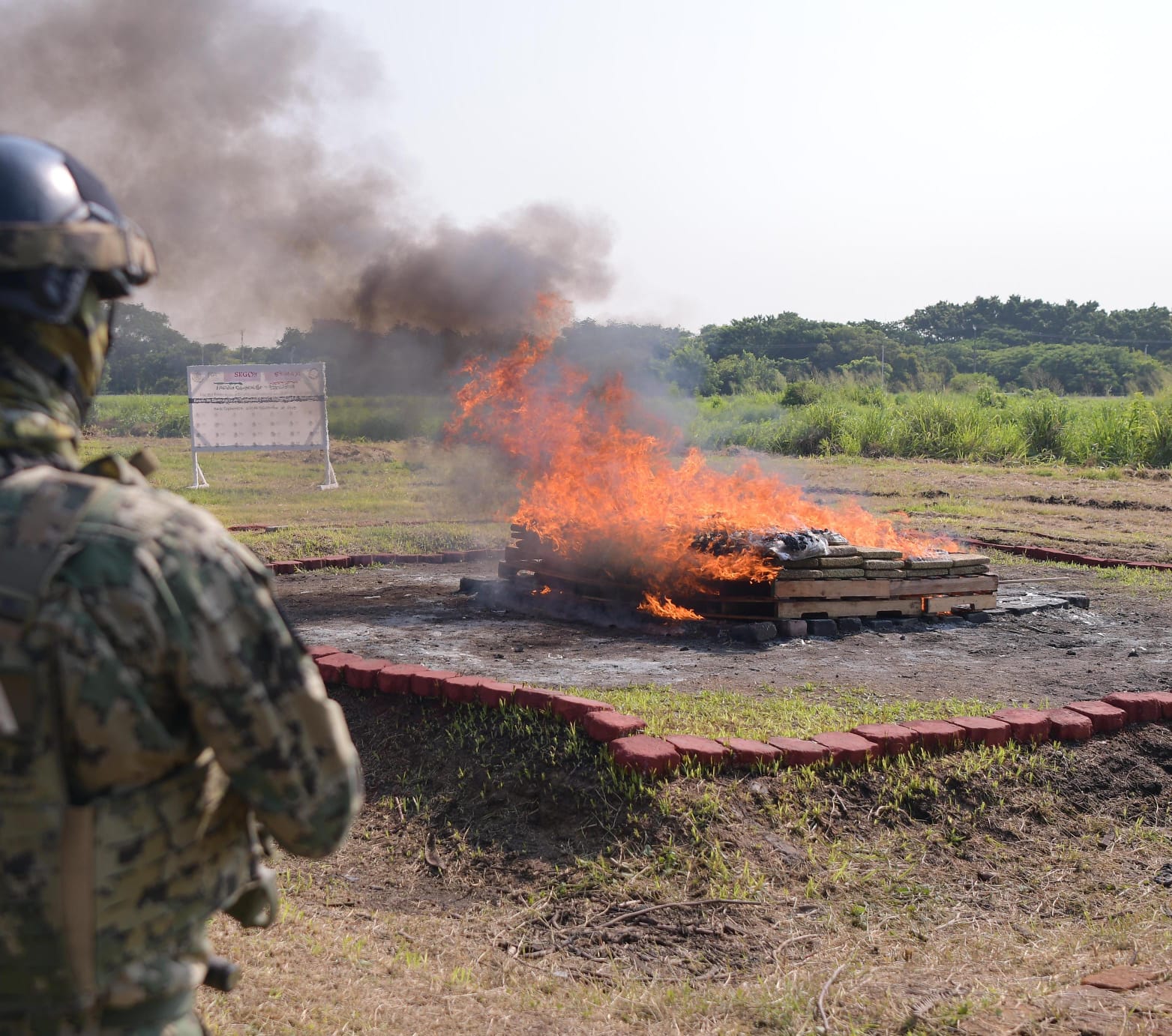 En esta ocasión fueron destruidos un total de 366 kilos de diversos narcóticos, principalmente marihuana, asegurados en distintos operativos realizados de manera coordinada entre autoridades federales y estatales. Acción que forma parte de la lucha contra la delincuencia organizada, cuyo proceso de incineración y destrucción estuvo supervisado por la Secretaría de Marina y la Fiscalía General de la República, garantizando su cumplimiento estricto con la normatividad vigente, bajo principios de legalidad y transparencia.