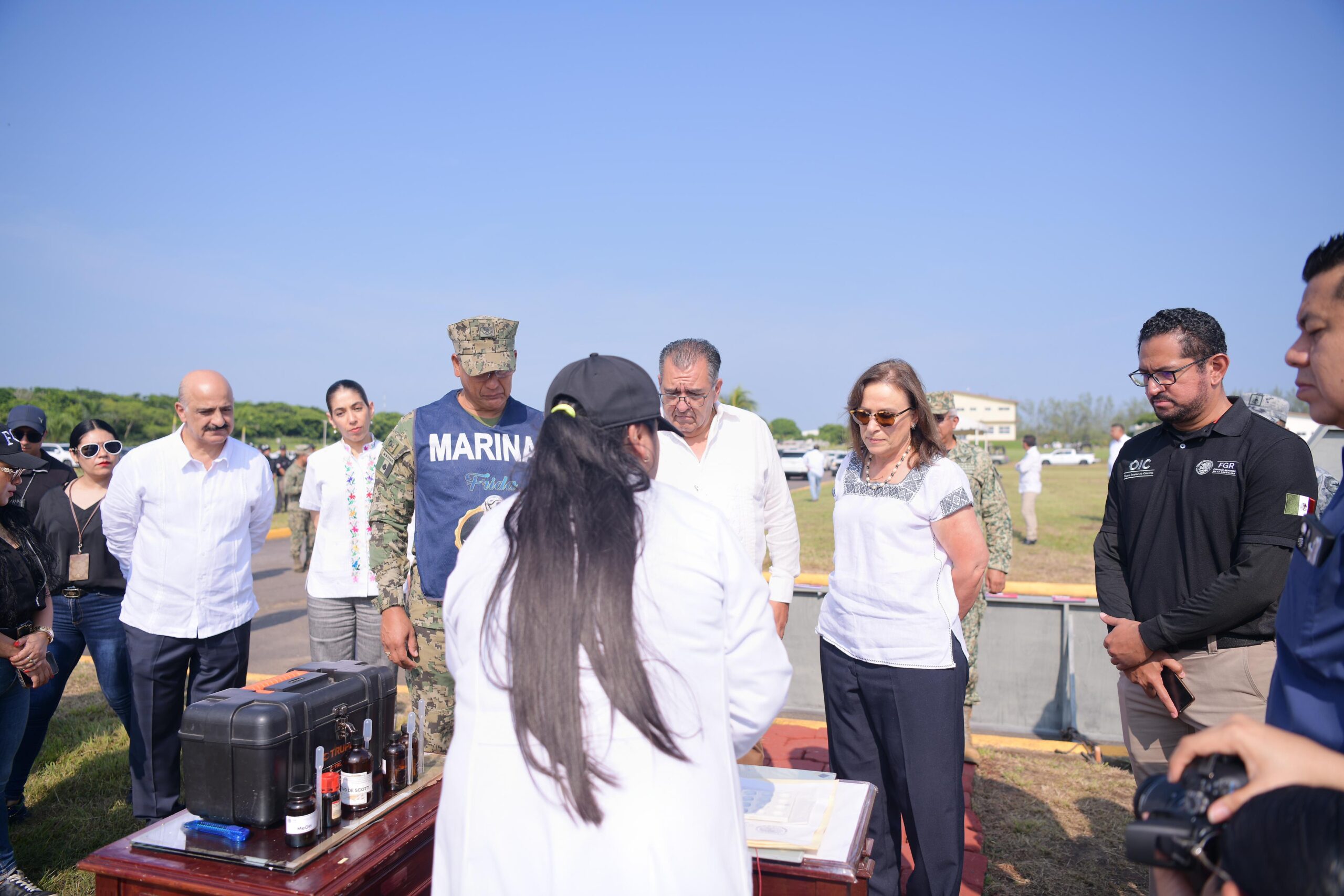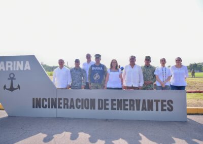 Veracruz, Ver., a 4 de septiembre del 2025.- Esta mañana, en las instalaciones de la Base Aeronaval de Las Bajadas, fue realizada la ceremonia de incineración de enervantes, la cual fue encabezada por la Gobernadora del Estado, Rocío Nahle García, en coordinación con el Comandante de la Primera Región Naval, Ramiro Lobato Camacho y el Fiscal Federal en el Estado de Veracruz, Gonzalo Medina Palacios.