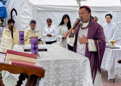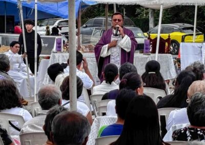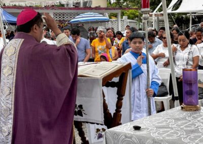 Inicialmente el Obispo de la Diócesis de Tuxpan, Monseñor Roberto Madrigal Gallegos ofició la misa por los fieles difuntos en la entrada al panteón, ante un numeroso grupo de feligreses.