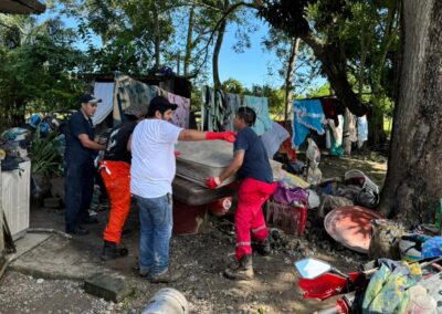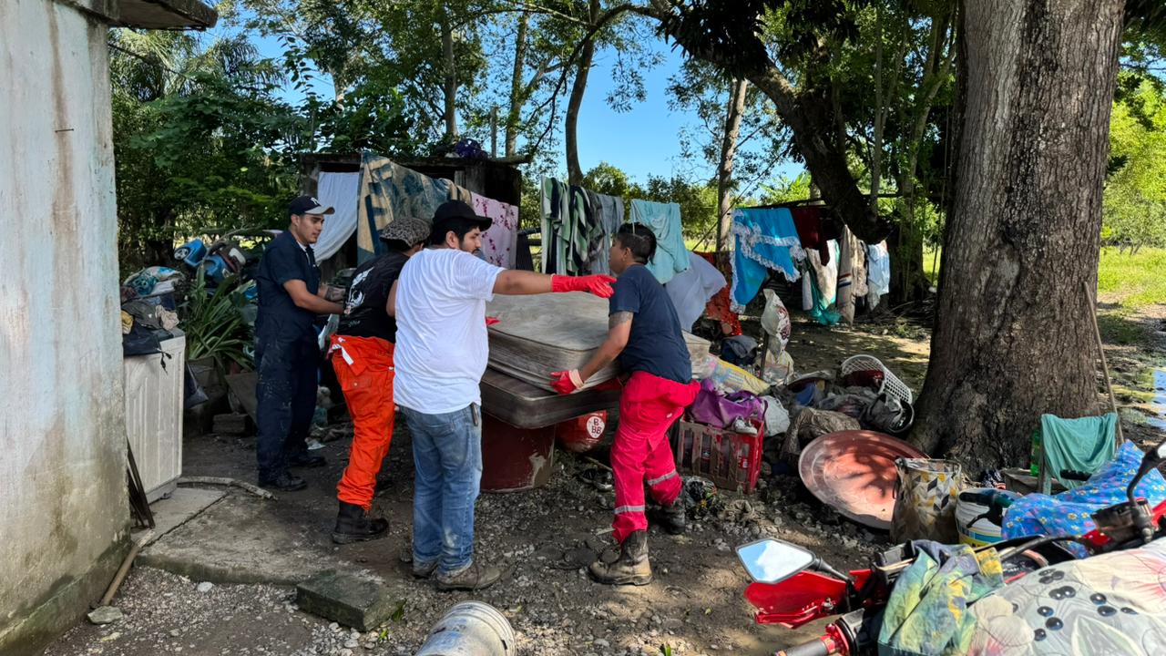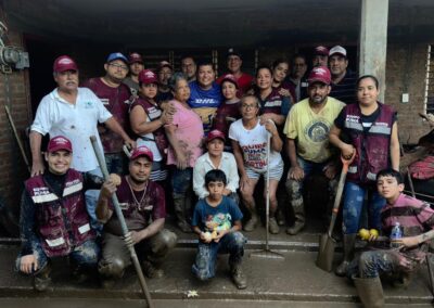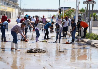 De la misma manera, las brigadas médicas y de limpieza continuaron en comunidades afectadas, coordinando esfuerzos. Destacó la labor de René Cortés “El Puma”; la Mtra. Marleth Blanco; Javier Sánchez Balderas y la Dra. Rosy Maranto, en Zapotal; Frijolillo; Juana Moza y la colonia Villa Rosita.