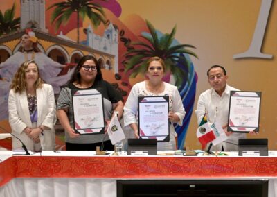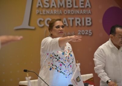 También, se firmó un convenio de colaboración entre CONATRIB y la Secretaría de las Mujeres del Gobierno de México, a través de su titular Citlalli Hernández Mora, con el objetivo de reforzar acciones para la prevención y erradicación de la violencia contra mujeres, adolescentes, niñas y niños. La Magistrada Presidenta participó como testigo de honor en este acuerdo, reafirmando el compromiso del Poder Judicial de Veracruz con la equidad de género.
