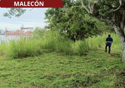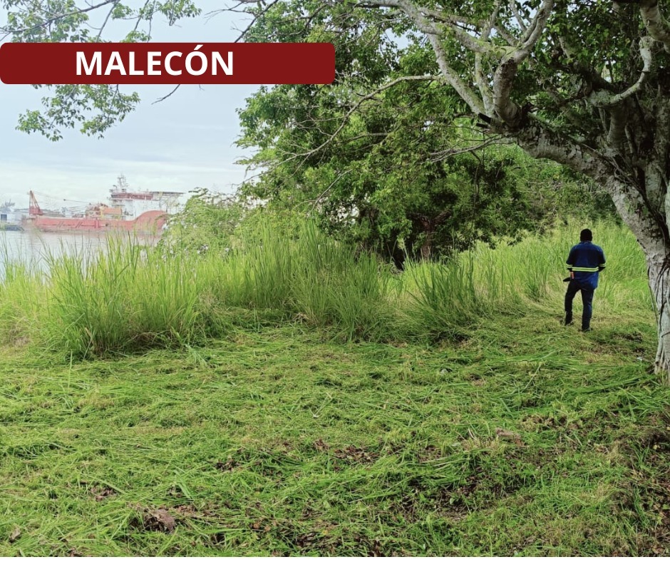 Tuxpan, Ver., 2 de octubre de 2025.- Cuadrillas de Parques y Jardines están atendiendo áreas verdes del Libramiento López Mateos, bulevar Maples Arce (carretera a la playa) y la ribera del río, a lo largo de tramos del nuevo malecón.
