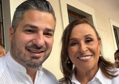 Asimismo, estuvo acompañado por integrantes del equipo que ha caminado con él durante este proceso: su suplente, el MVZ Alejandro Alarcón González; los regidores electos Marleth Blanco Téllez y René Cortés “El Puma”, quienes formarán parte del gobierno entrante encabezado por Cortina; además de Rogerio Nader González, José Armando Huesca Ovando, José Laso de la Vega, Adrián Ornelas y Víctor Nava.