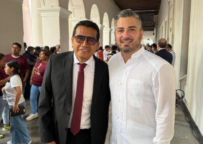 Xalapa, Veracruz.– El diputado local y alcalde electo de Tuxpan, Daniel Cortina Martínez, asistió este domingo 30 de noviembre al Primer Informe de Gobierno de la gobernadora Rocío Nahle García, acto celebrado en Plaza Lerdo, en la capital del estado. Durante el evento, mantuvo un estrecho acercamiento con legisladoras y legisladores del Congreso del Estado, saludando y dialogando con quienes forman parte de la construcción del proyecto transformador en Veracruz.