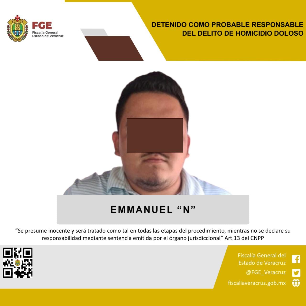Tihuatlán, Veracruz. – Esta tarde, la Fiscalía General del Estado de Veracruz informó que la Policía Ministerial detuvo a Emmanuel «N» quien es señalado como presunto responsable del homicidio doloso de la víctima identificada con las iniciales P.G.H.