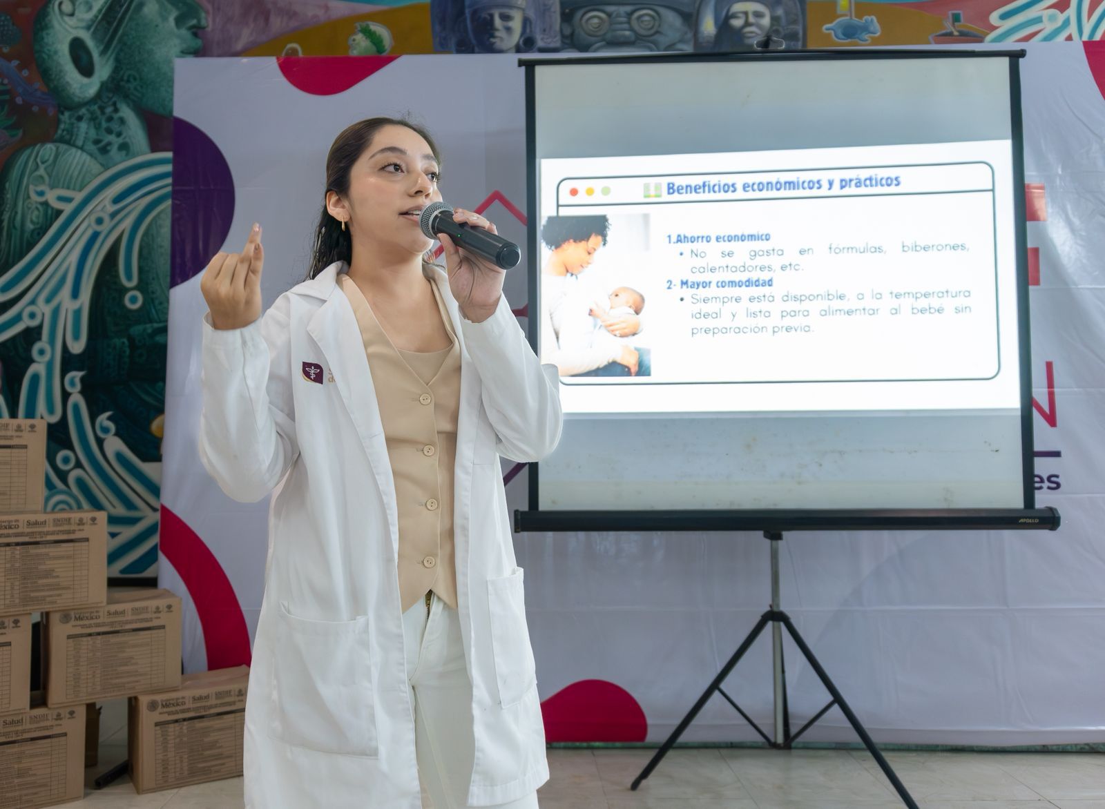 Previo a la entrega, las beneficiadas recibieron una plática informativa sobre la importancia de la lactancia materna y la alimentación en la infancia.