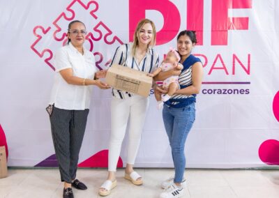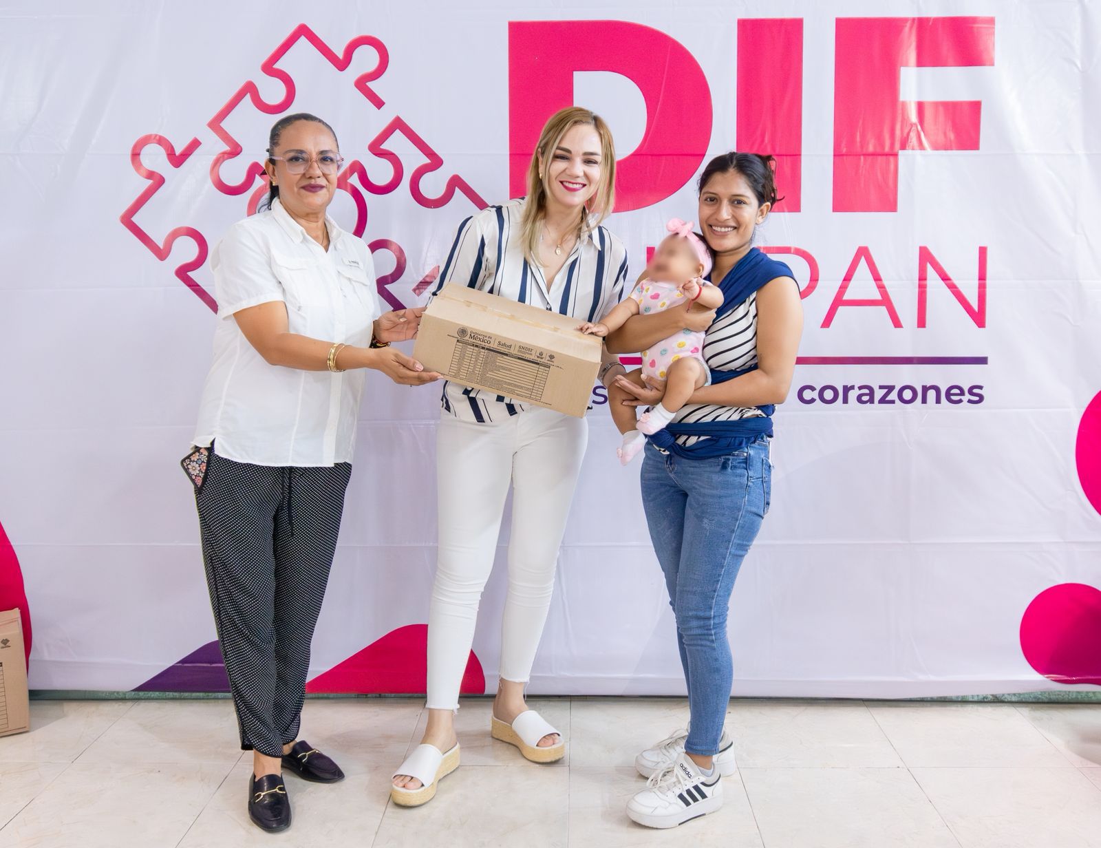 Ante las madres favorecidas, López Gutiérrez destacó que el gobierno y el DIF local quieren que las mujeres desarrollen su embarazo bien alimentadas y que, además, tengan una adecuada recuperación postparto y una lactancia materna exitosa.
