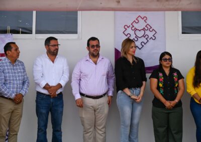 En el corte del listón inaugural, la presidenta del DIF Melba López Gutiérrez estuvo acompañada por su esposo, el alcalde Dr. Jesús Fomperoza Torres; la síndica única Lidia de Jesús Santiago Hernández; las regidoras y los regidores María del Pilar Martínez Matesanz, Anahí Aguilar López, Juan Gómez García y Axel Bernal Herrera y el director del DIF Nelson Hernández Cruz.