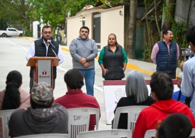Tuxpan, Ver.- Autoridades municipales participaron en la inauguración de la obra de pavimentación con concreto hidráulico, incluyendo la rehabilitación de guarniciones y banquetas, en la calle Venezuela, entre Brasil y México, de la colonia Carlos Salinas de Gortari.