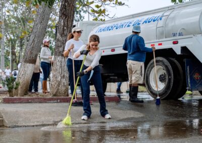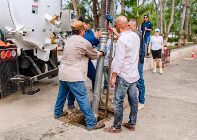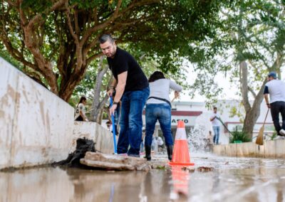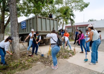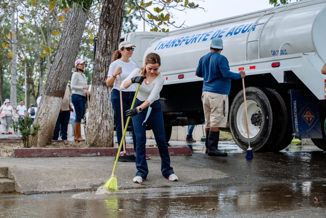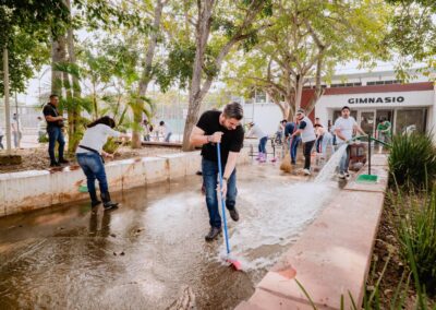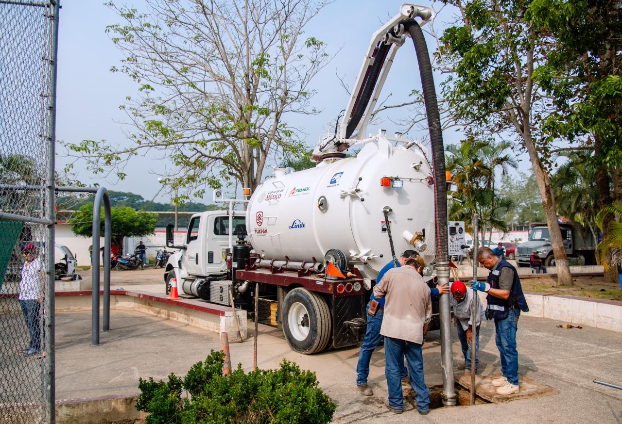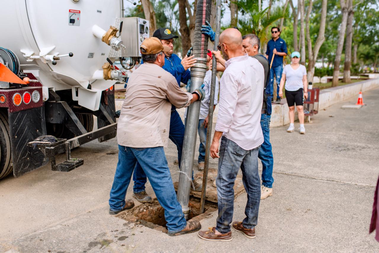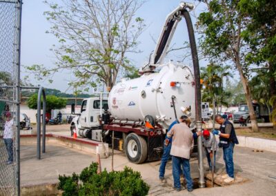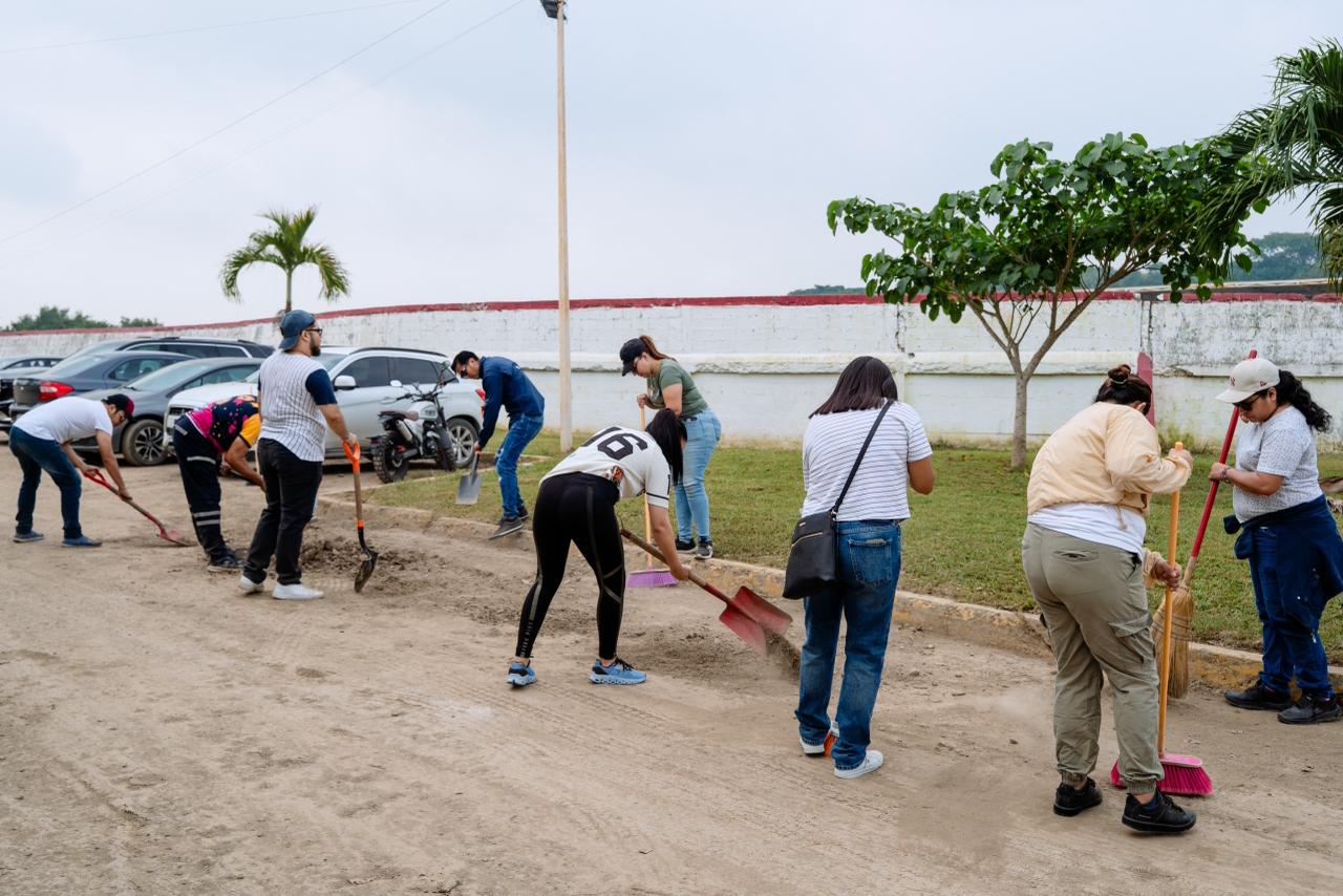 Durante la jornada se realizaron labores de limpieza general, retiro de residuos y rehabilitación de áreas comunes. Para fortalecer los trabajos, se contó con el apoyo de maquinaria especializada, incluyendo tres pipas de agua y una unidad de desazolve combinado, lo que permitió mejorar de manera significativa las condiciones del lugar.