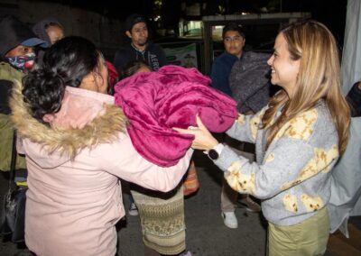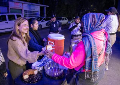 Como parte de estas acciones, la presidenta del DIF municipal, Marisol Martínez Barrios, proporcionó baños portátiles, camastros, cobijas y café caliente, con el objetivo de proteger la salud de las familias y brindarles condiciones más dignas durante su estancia en estos espacios, especialmente durante las noches con mayor descenso de temperatura.