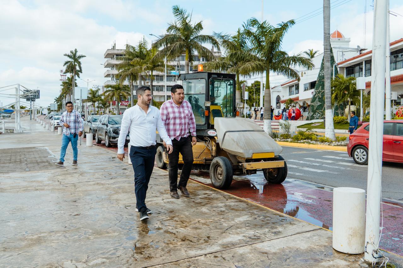 Con el embellecimiento del bulevar y la zona centro de la ciudad, limpieza con barredora hidráulica, reubicación de cableado del alumbrado público, desazolve de alcantarillas y mantenimiento en parques y jardines, comenzó desde muy temprano el trabajo de la dirección de Servicios Municipales a cargo de Mauro Molina.