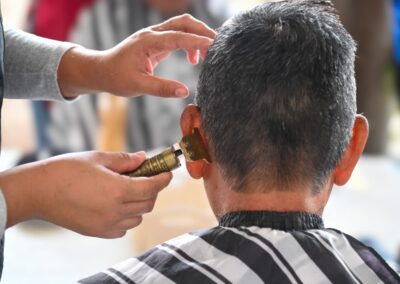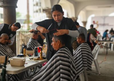 Finalmente, jóvenes del instituto de belleza The Queens realizaron cortes de cabello gratis, por lo que ciudadanos de todas las edades acuden como cada jueves.