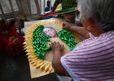 Este jueves en la planta baja de presidencia, decenas de personas acudieron para trabajar en la elaboración de cuadros con motivos navideños. La fundación Sin Miedo a Trabajar Contigo es la encargada de impartir este taller en donde decenas de mujeres asistieron para realizar manualidades con listones.