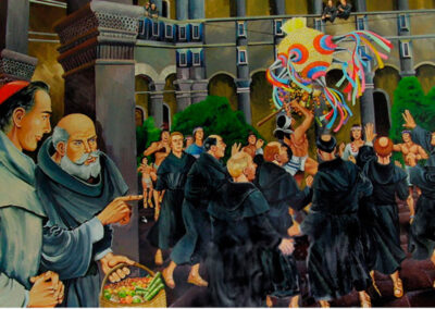 | 6 al 26 de Dic. | Duración del Panquetzaliztli (veintena o mes mexica). Fiesta mayor en honor a Huitzilopochtli, el dios solar y de la guerra. | Misas de Aguinaldo / Posadas (16 al 24 de diciembre). | Los frailes sustituyeron el culto a Huitzilopochtli por las Misas de Aguinaldo (origen de las Posadas), aprovechando el marco temporal de la gran celebración mexica para facilitar la conversión. |