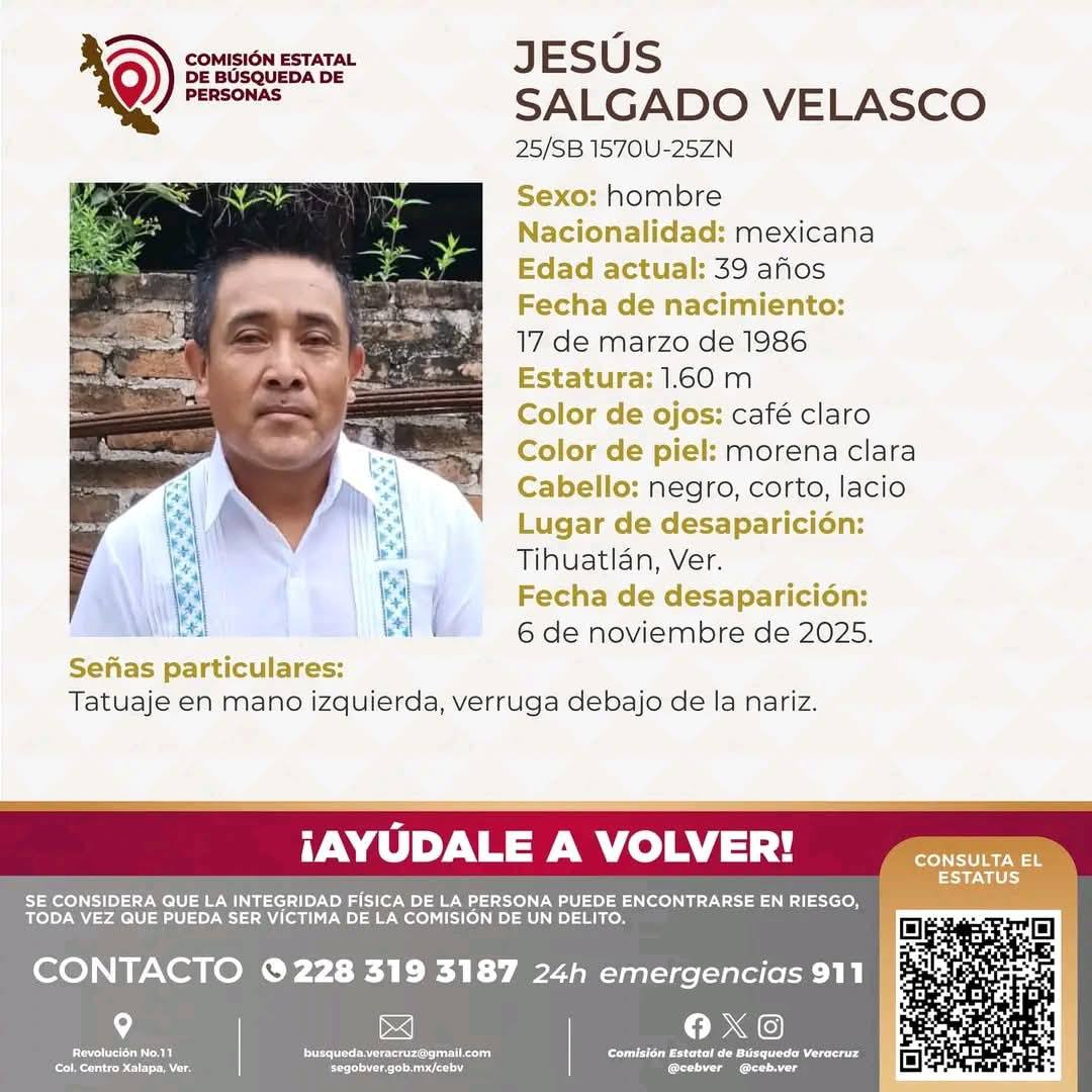 Las corporaciones mantienen un dispositivo de búsqueda en caminos rurales y zonas aledañas a donde fue hallada la unidad, sin que hasta el momento existan pistas sobre el paradero del conductor. Las autoridades exhortan a la ciudadanía a reportar cualquier información que ayude a localizar a Jesús Salgado Velasco al número de emergencias 911 o a la Comisión de Búsqueda al 228 319 3187.