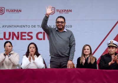 Comunicado de Prensa del Ayuntamiento de Tuxpan, Ver.– Este lunes se llevó a cabo el primer Lunes Cívico con honores a la bandera nacional del Gobierno Municipal de Tuxpan, correspondiente al periodo 2026–2029, como parte de las acciones encaminadas a fortalecer la identidad nacional y los valores cívicos entre la ciudadanía.