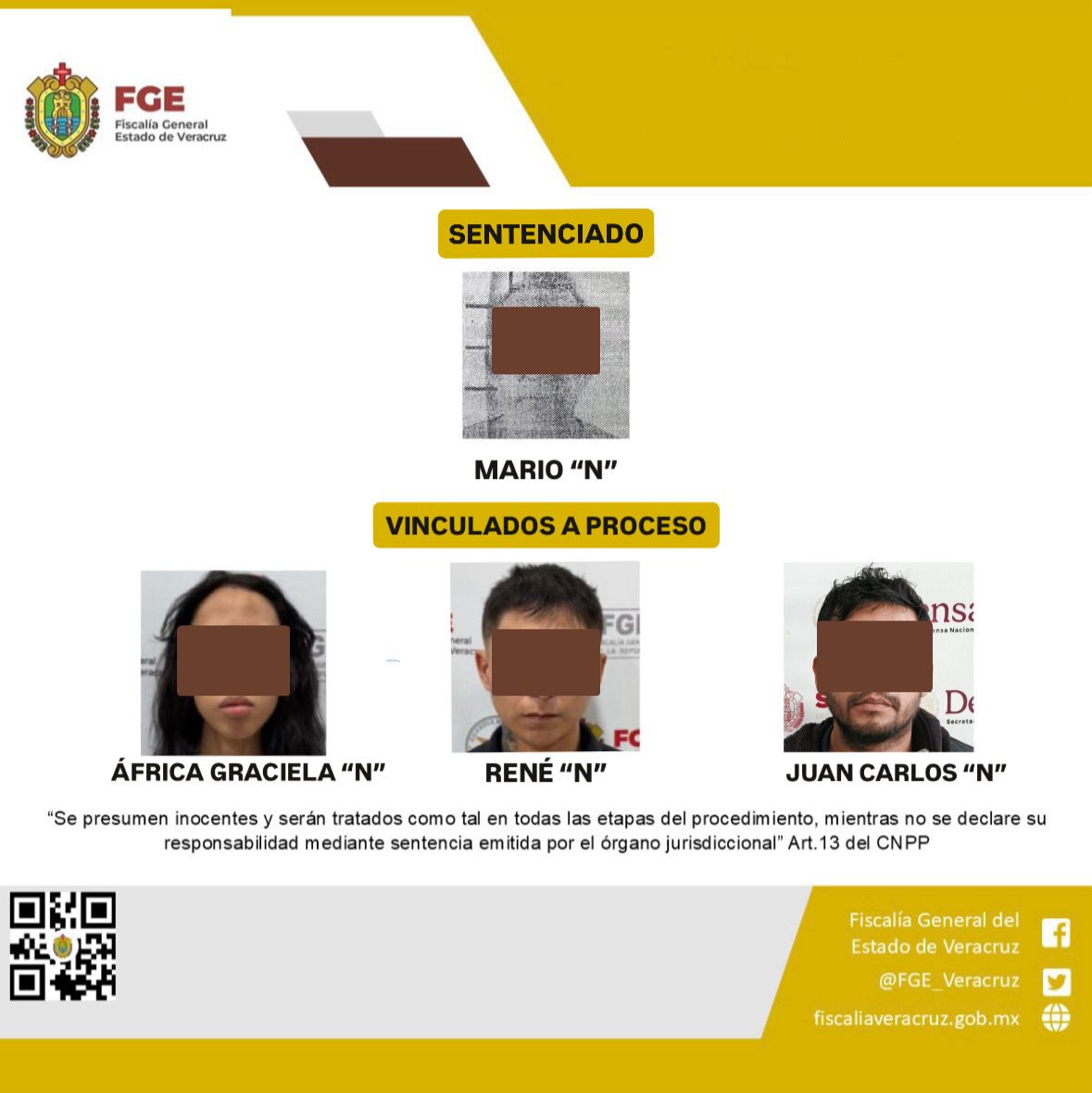 Xalapa, Ver., a 15 de enero del 2026.- Esta mañana la Fiscalía General del Estado informó que, a través de las Fiscalías Regionales, Especializada y de la Unidad Especializada en Combate al Secuestro y la Extorsión, obtuvo diversas resoluciones judiciales, destacando una sentencia condenatoria por el delito de pederastia agravada y dos vinculaciones a proceso por diversos delitos en distintos municipios de la entidad.
