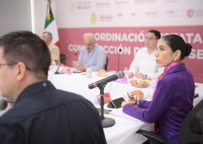 Boca del Río, Ver., a 31 de octubre del 2025.- En las instalaciones del Centro de Control, Comando, Comunicaciones, Cómputo, Contacto Ciudadano e Inteligencia (C5i), la Fiscal General del Estado, Verónica Hernández Giadáns, participó en la Mesa de Coordinación Estatal de Construcción de Paz y Seguridad; donde informó acerca de los avances en imputaciones, vinculaciones a proceso, sentencias condenatorias y fallos condenatorios obtenidos por las distintas sedes de las Fiscalías Regionales y Especializadas.